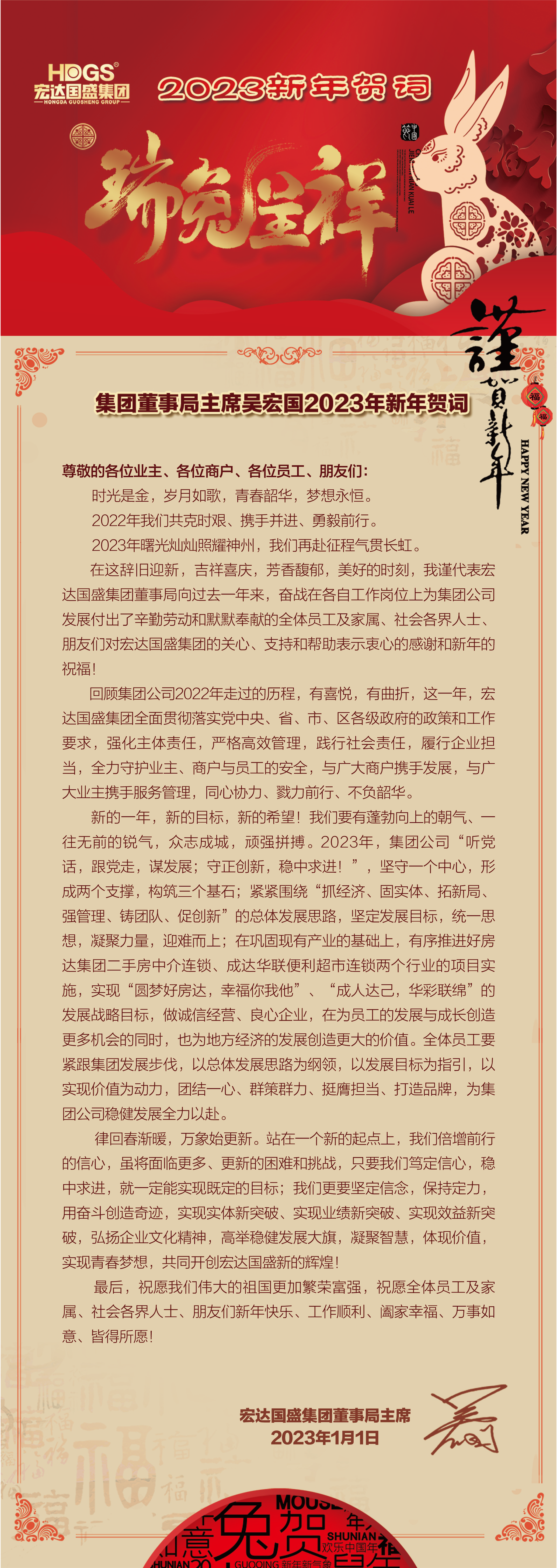 宏達(dá)國(guó)盛集團(tuán)董事局主席吳宏國(guó)2023年新年賀詞
