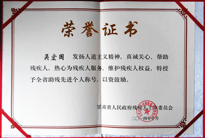 集團(tuán)董事長吳宏國被評為“第四次全省助殘先進(jìn)個人”